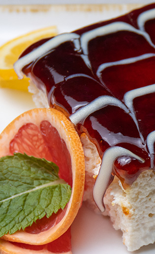 (odležani stek telećeg filea na žaru na pireu, grilovanim povrćem, krem sosom i slatkom sosu od šumskog voća)